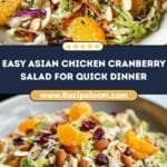 Want to spark up your Asian Chicken Cranberry Salad Recipe before serving? Add some thinly sliced mandarin oranges or snap peas for extra sweetness and crunch. Sprinkle chili flakes or a drizzle of sriracha for a little heat, or toss in chopped green onions for fresh zing.